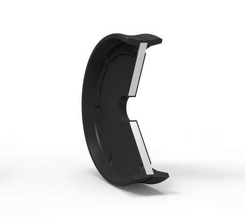 A double acting complete piston seal which consists of a steel plate volcanized with nitrile rubber