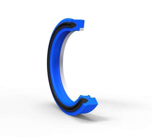 A three piece single acting sealing set with additional sealing lip, one elastomer nitrile rubber and one back-up ring